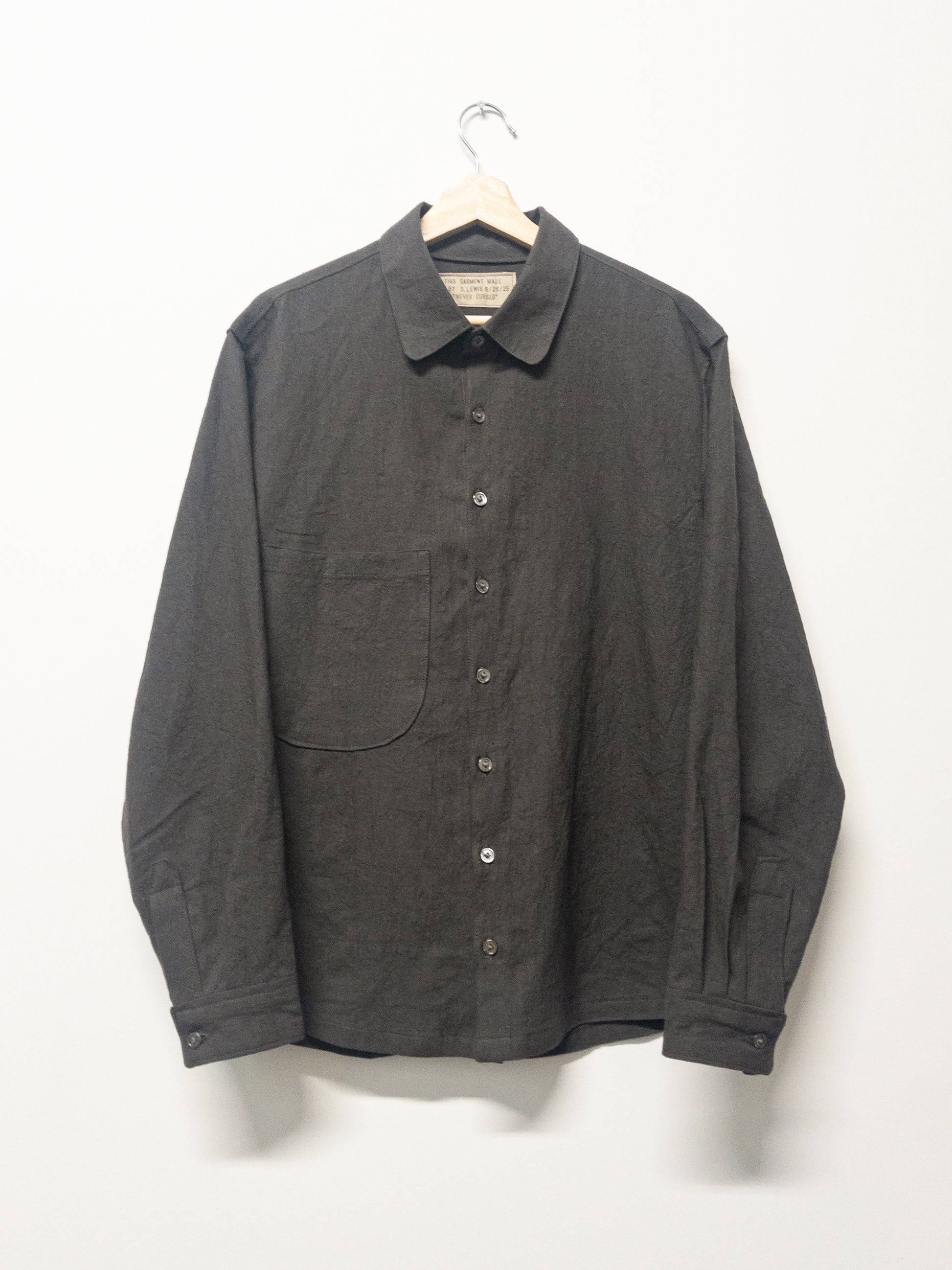 full cut shirt with oversized/dropped chest pocket. real pearl buttons.