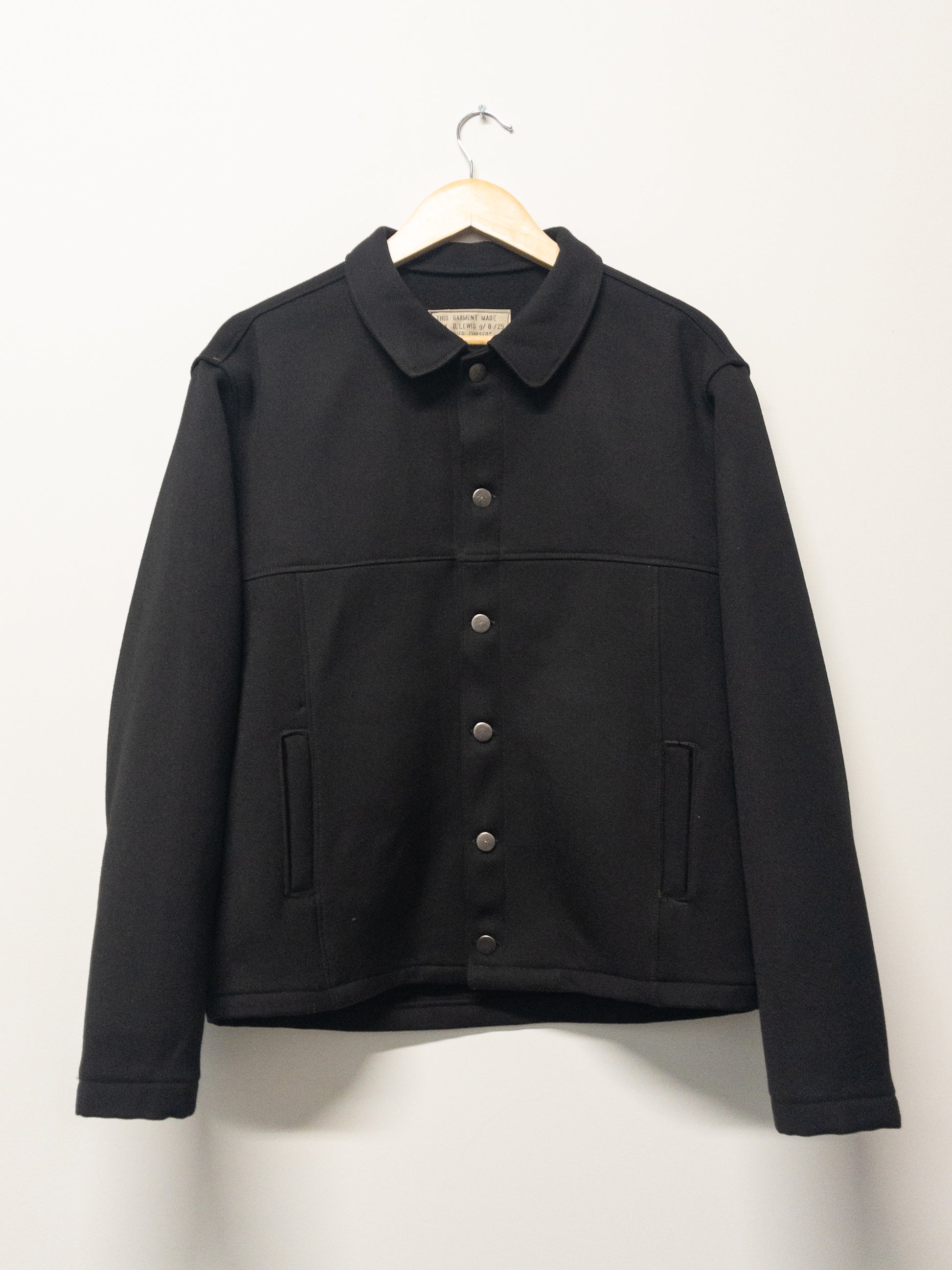 similar fit to a trucker jacket, slightly boxy and cropped. two hand warmer welt pockets sewn in front. antique brass buttons.
